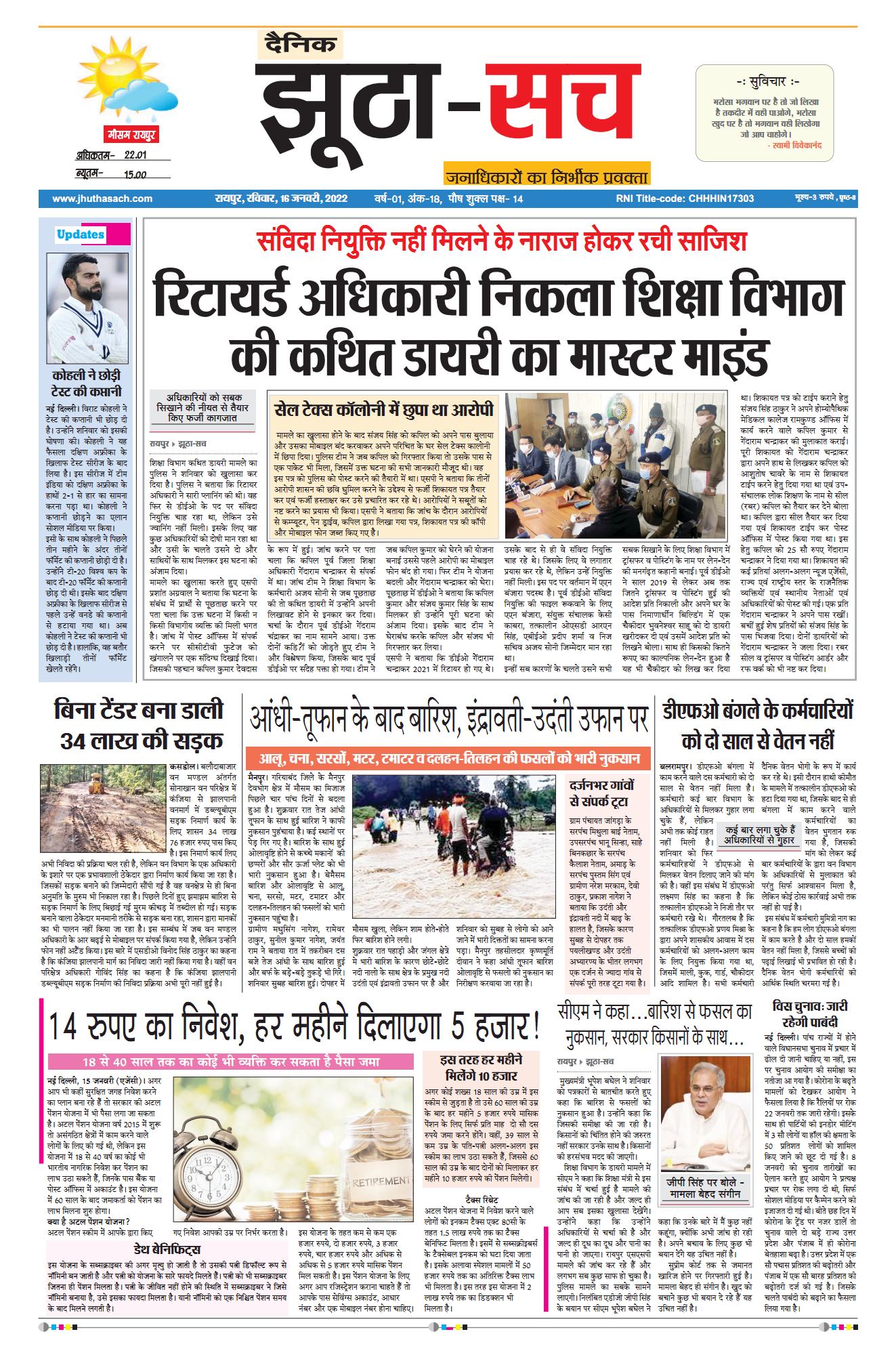 पढ़िए 16 जनवरी का दैनिक झूठा-सच अख़बार CLICK